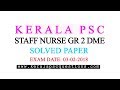 Kerala PSC Staff nurse Grade 2 solved Paper 2018